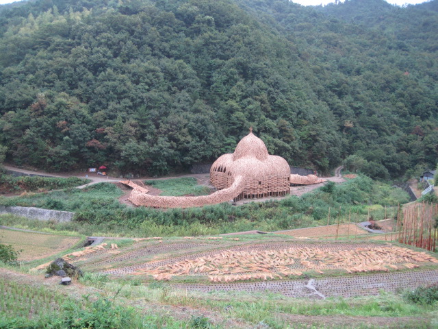 肥土山、中山の美しい棚田の風景が作品と合わさり、新しい島の魅力となっている。