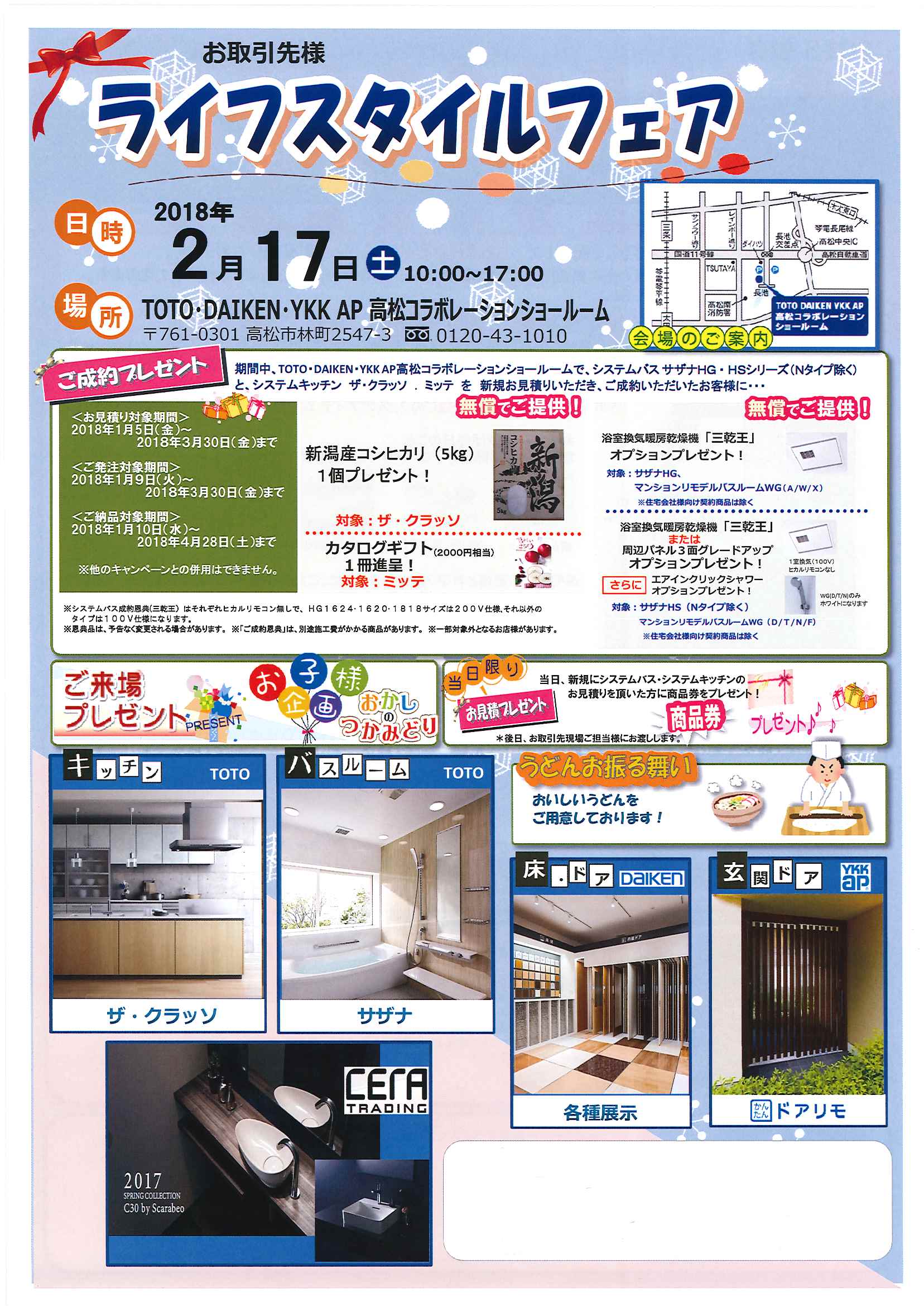 2月17日(土) TOTO 高松ショールームでライフスタイルフェアを開催します。